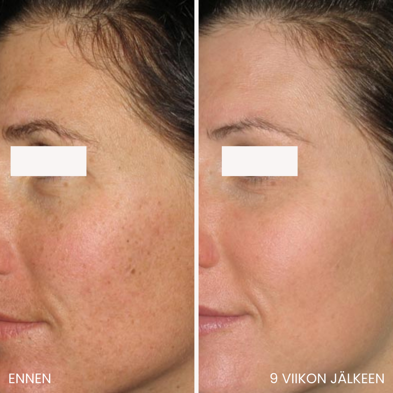Rött ljus och NIR-ljus har visat sig bidra till en jämnare hudton samt minska synliga ärr och pigmentförändringar. (Resultat kan ses inom 14–30 dagar).