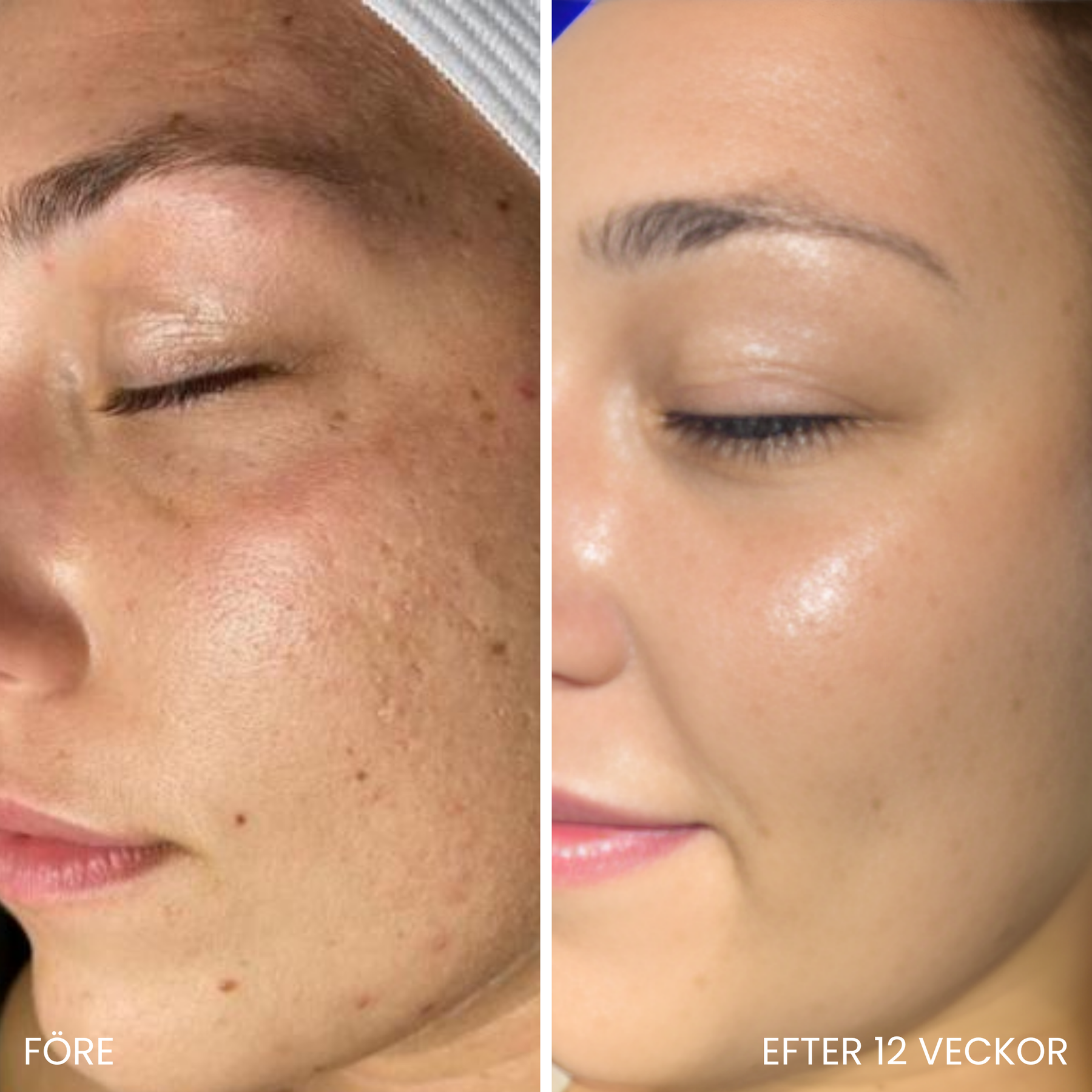 Resultaten varierar, men med konsekvent daglig användning märker många kunder synliga förbättringar i hudstruktur, fasthet och lyster inom 6–8 veckor. Vissa effekter, som förbättrad serumabsorption och en omedelbar "glow"-känsla, kan upplevas redan efter den första användningen.