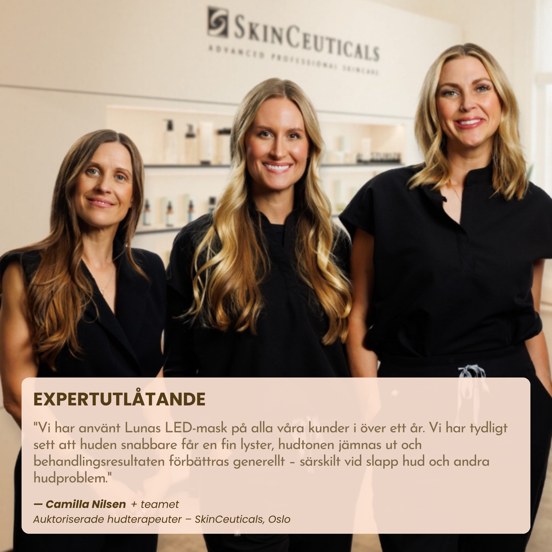 "Vi har använt Lunas LED-mask på våra kunder i över ett år. Vi har tydligt sett att huden snabbare får en fin lyster, hudtonen jämnas ut och behandlingsresultaten förbättras generellt – särskilt vid slapp hud och andra hudproblem."